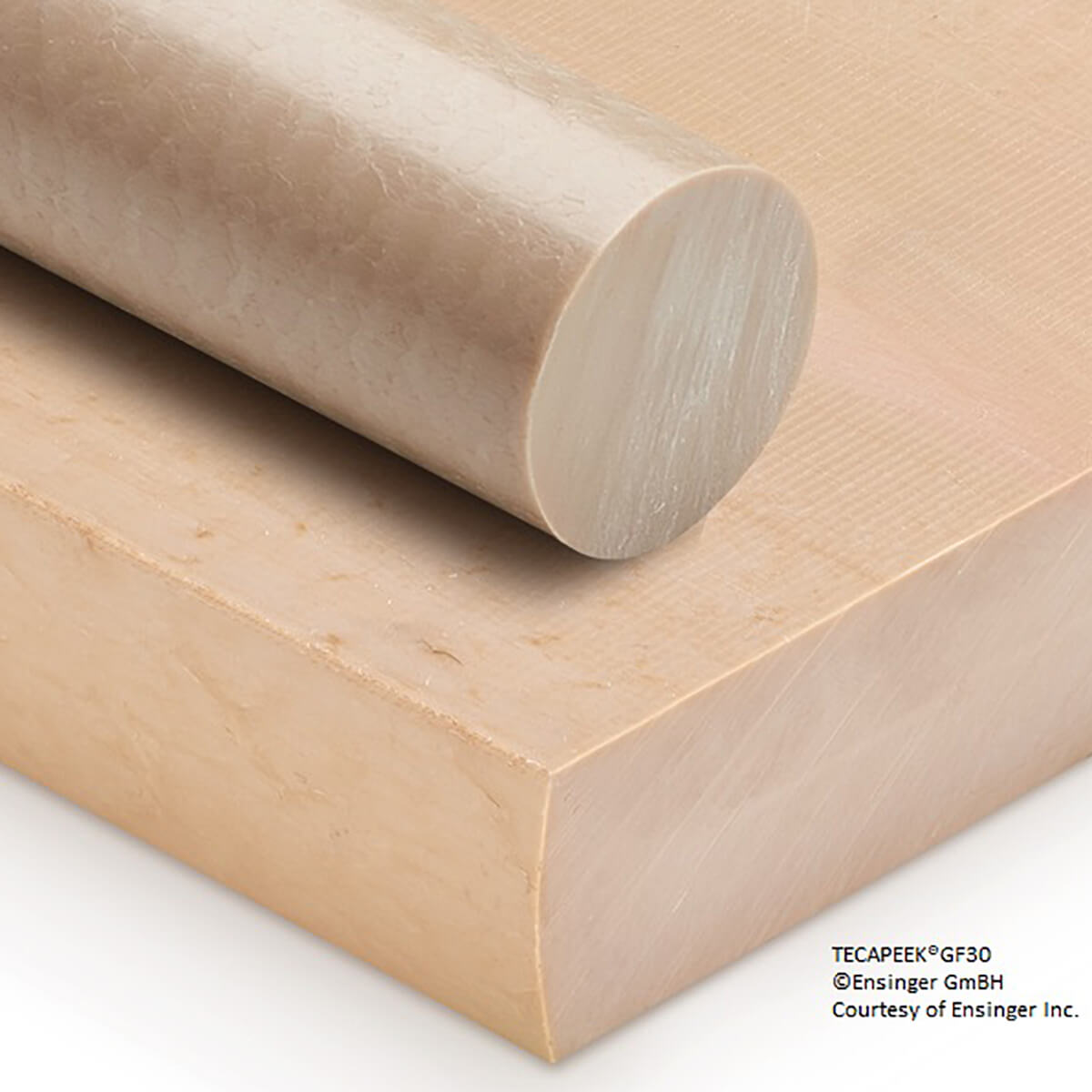 This makes it ideal for applications that require improved stability strength and stiffness at temperatures above 300ยบ f. The addition of glass fibers significantly reduces the expansion rate and increases the flexural modulus of peek. In comparison to unfilled peek this glass fibre reinforced material exhibits increased mechanical strength and high rigidity. Peek 30 glass filled properties sheet tube rod in stock cut to size same day shipping gf30 peek parts tech.